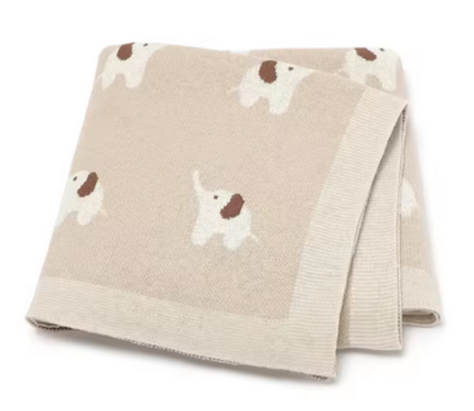 Babydecke, Baumwolle, Neugeborene, hellbraun mit Elefanten