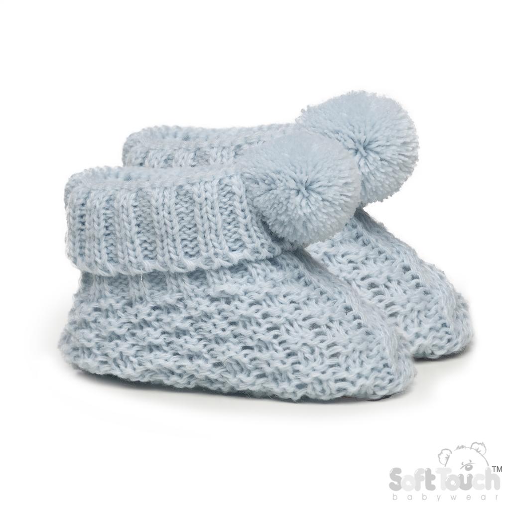Babyschuh -Strickschuh mit Zopfmuster und Bommel, hellblau, newborn