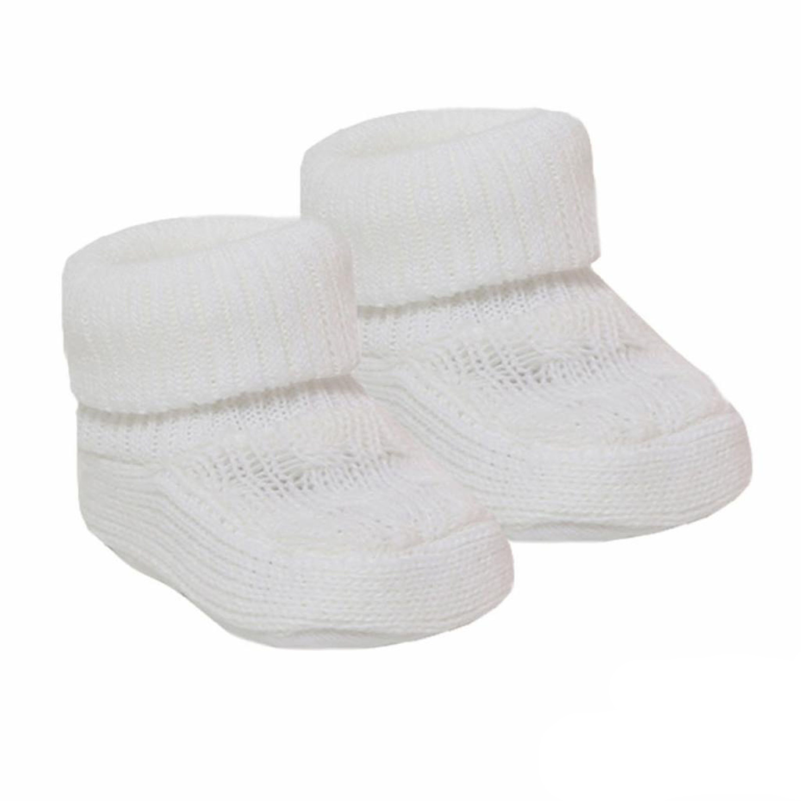 Ausgesucht wurden hier niedliche Babystrickschuhe mit Zopfmuster auf dem Spann und Umschlag für Ihr Baby und Reborn Baby.