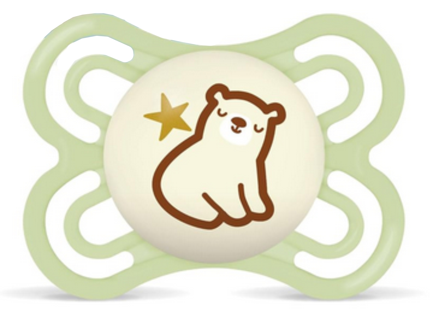 Schnuller Bärchen mit Stern, hellgrün, leuchtend SPEZIALVERSCHLUSS!