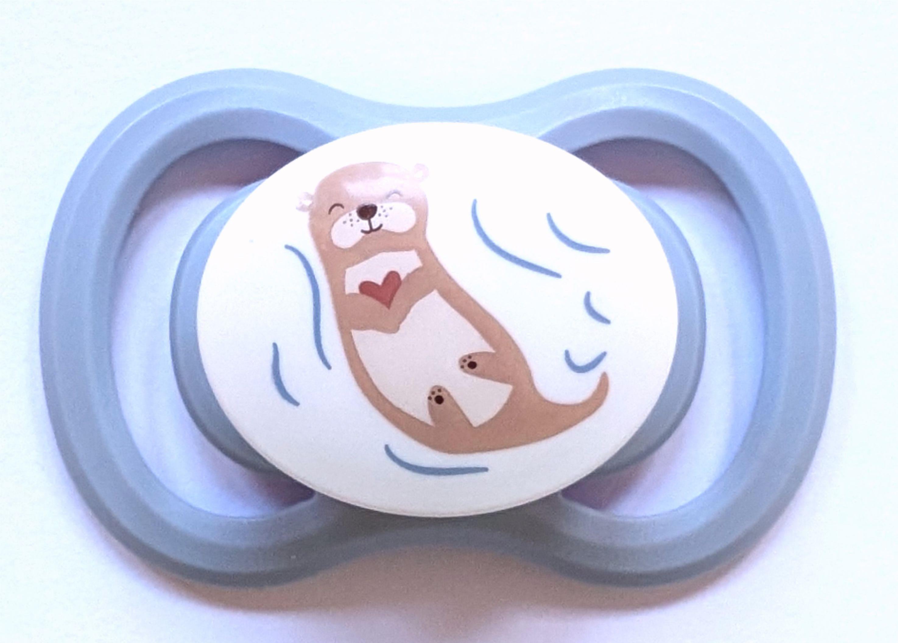 Schnuller himmelblau-weiß mit Otter SPEZIALVERSCHLUSS!