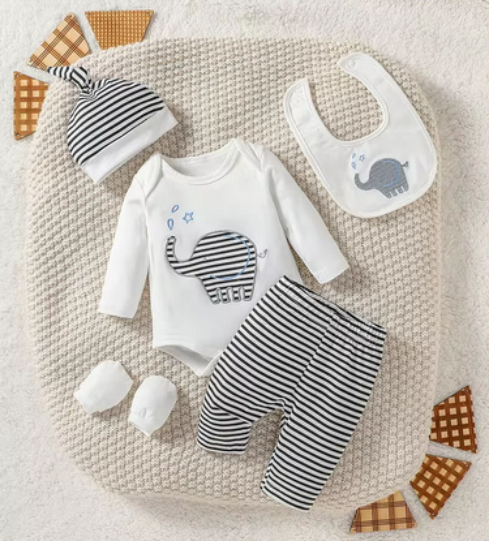 Body, weiß mit Applikation Elefant- schwarz-weiß gestreift