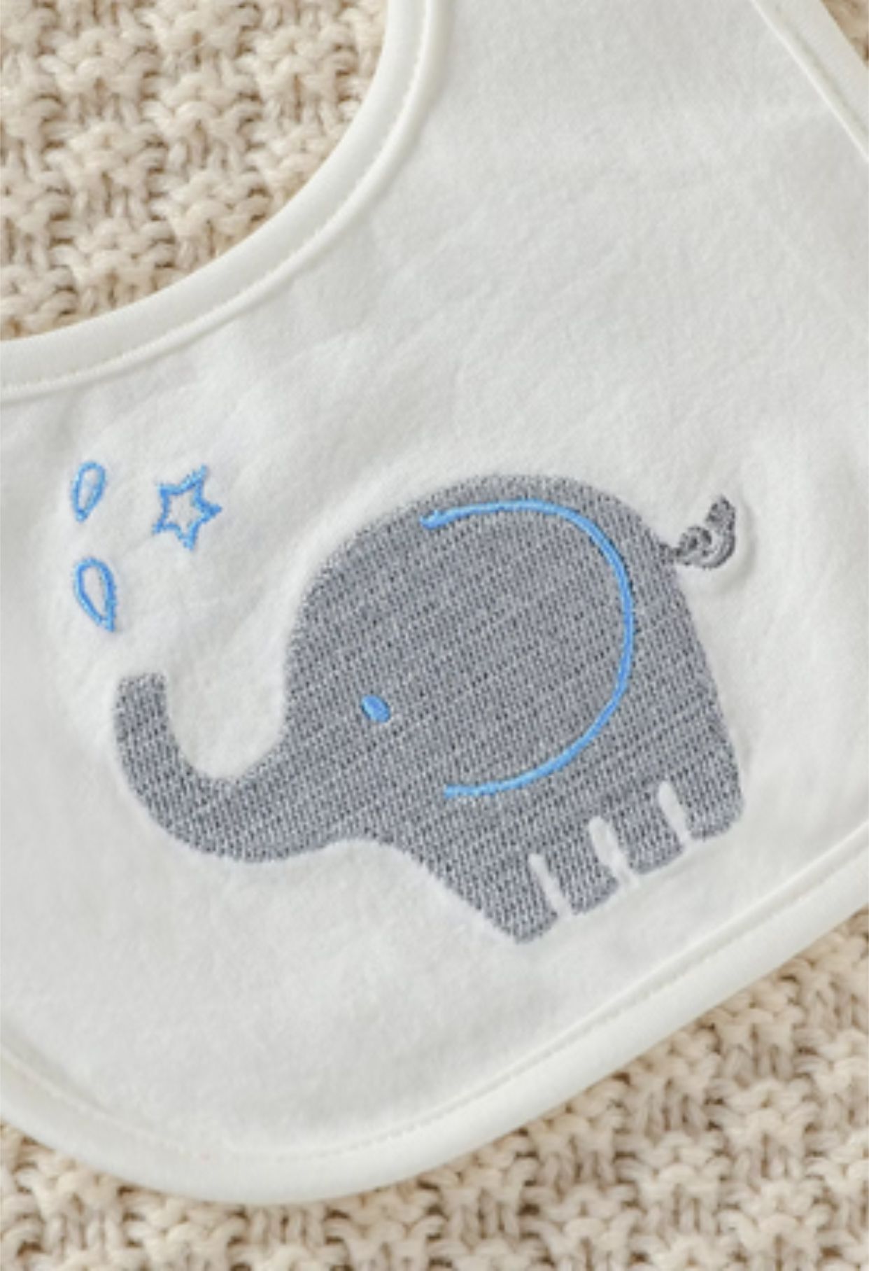 Lätzchen : weiß mit Applikation Elefant in grau, 2 Druckknöpfe zum Verstellen